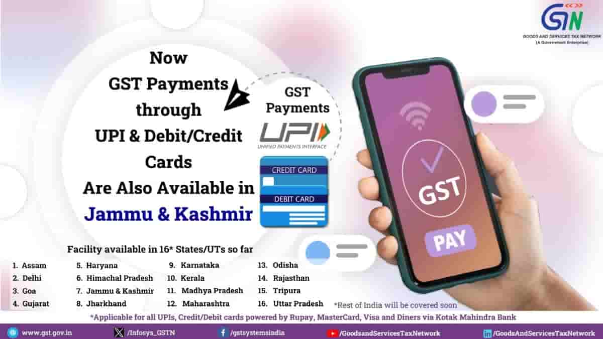 GST Payment Facility Through UPI And Debit Card/Credit Card Is Now Also Available In Jammu & Kashmir