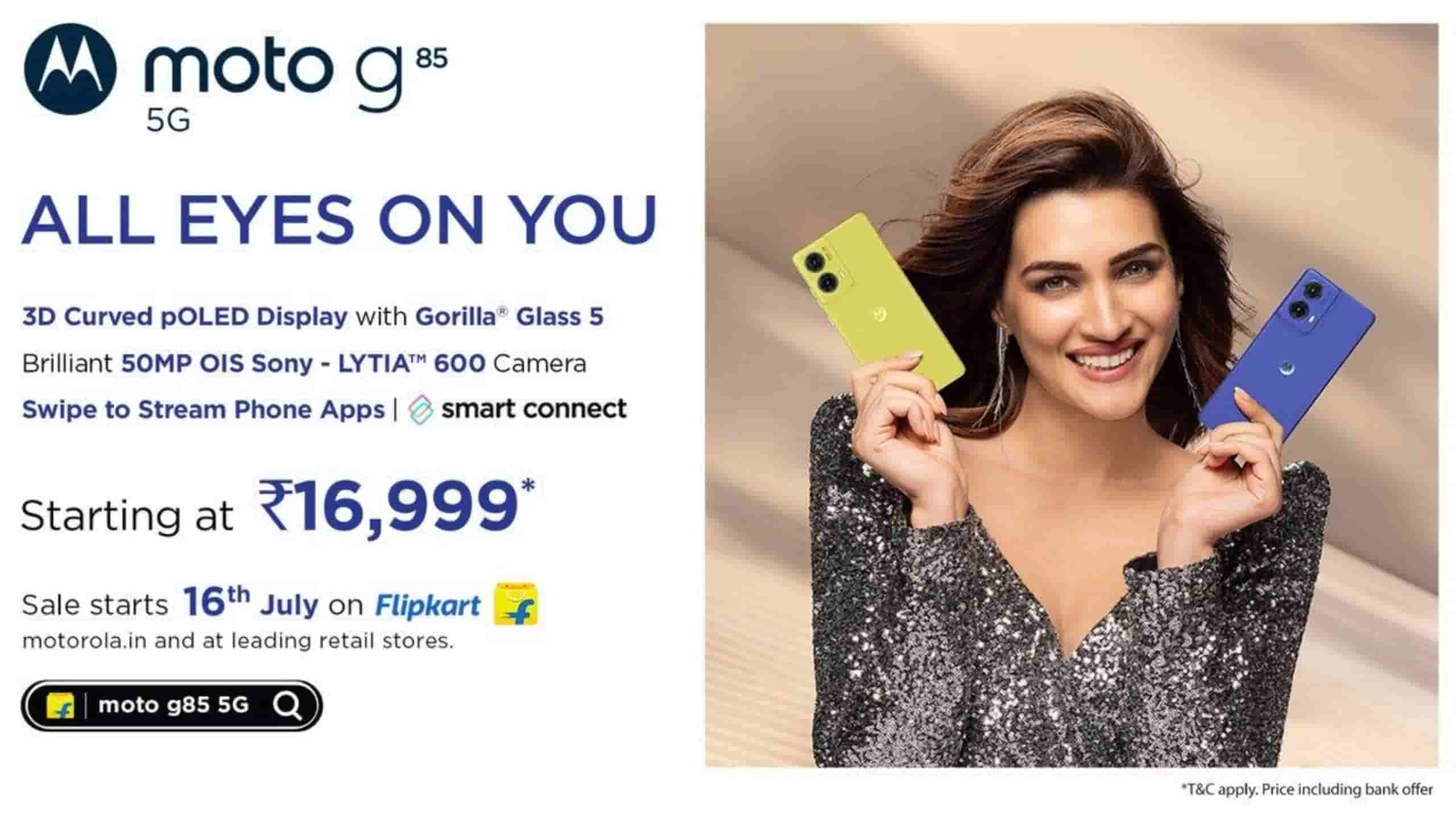 The Moto G85 5G smartphone has been priced at Rs. 17,999 for the 8GB RAM + 128GB storage variant. The top-end model with 12GB RAM + 256GB storage is priced at Rs. 19,999. The smartphone comes in Olive Green, Cobalt Blue, and Urban Gray colour options. It will go on sale from July 16 at 12pm IST and will be available on Flipkart, Motorola’s official site, and selected retail stores. Buyers will also get the chance to avail of the instant bank discount of Rs. 1,000 or an exchange bonus of Rs. 1,000 on the value of the old phone while purchasing the Moto G85 5G.