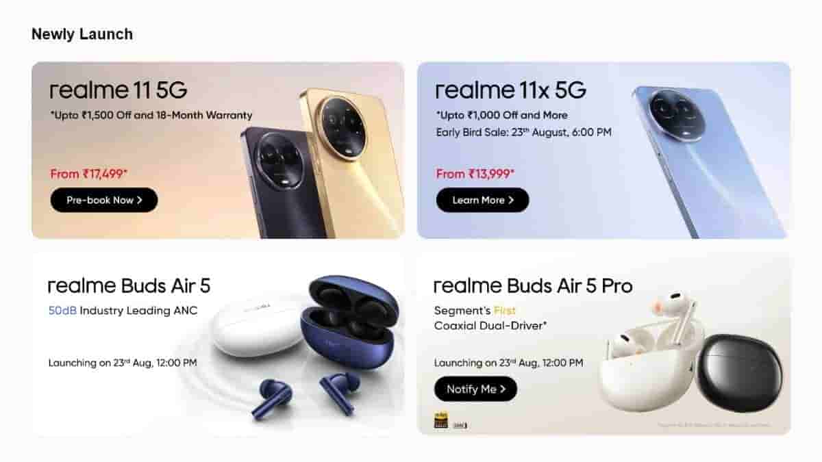 Realme 11 5G and 11x 5G Smartphones Along with the Buds Air 5 Series Earbuds Launched in India