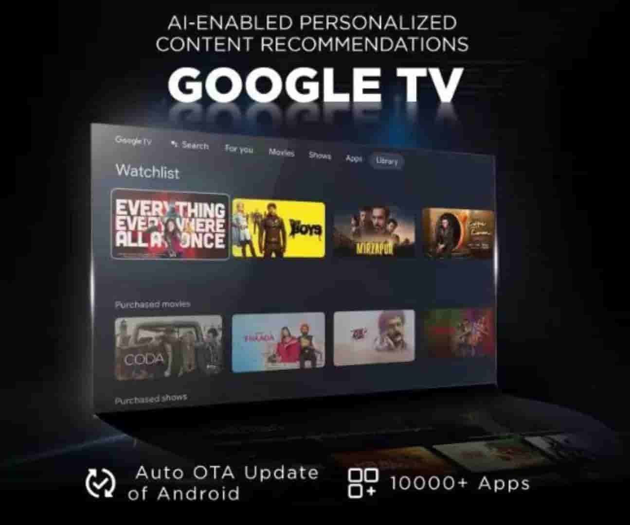 The device also supports Google TV powered by the Android operating system which provides its users with AI enabled personalized content recommendations. Users will also be able to access more than 10,000 apps on Google TV.