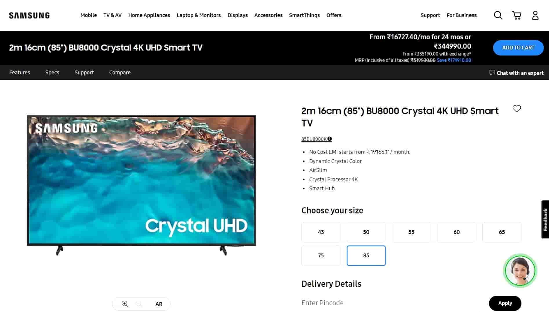 The Samsung BU8000 smart TV can now be bought from Samsung’s website at a price of Rs. 3,44,990. This is a Rs. 1,74,910 discount on its actual list price of Rs. 5,19,900. With an exchange, customers will even be able to get the product for as low as Rs. 3,35,190.