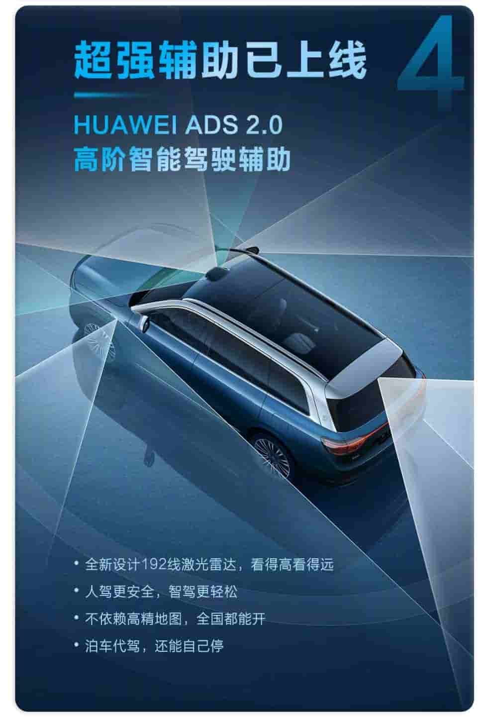 The advanced intelligent driving assistance, Huawei ADS 2.0, comes with a newly designed 192-line LIDAR offering safer driving experience, nationwide open access, and parking assistance.