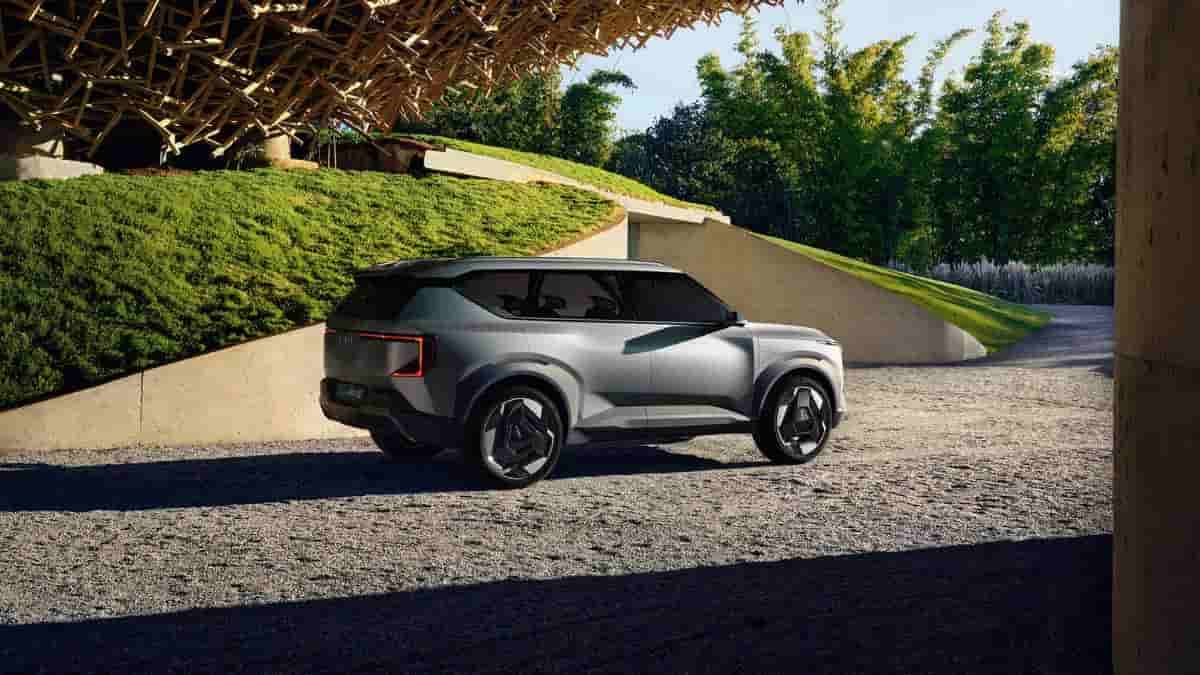 As mentioned above, more or less the EV5 concept design retains the boxy design of the EV9 with a few similar design specs. The concept has the same front-end design but has a different triangular-shaped headlight with a futuristic flowing pattern. At the bottom end, unlike the EV9, the concept EV5 has a larger lower air intake. Coming to its rear, the EV5 concept has two C-shaped rear lights on both sides, extending almost to the center. A rear spoiler can also be spotted on the top.