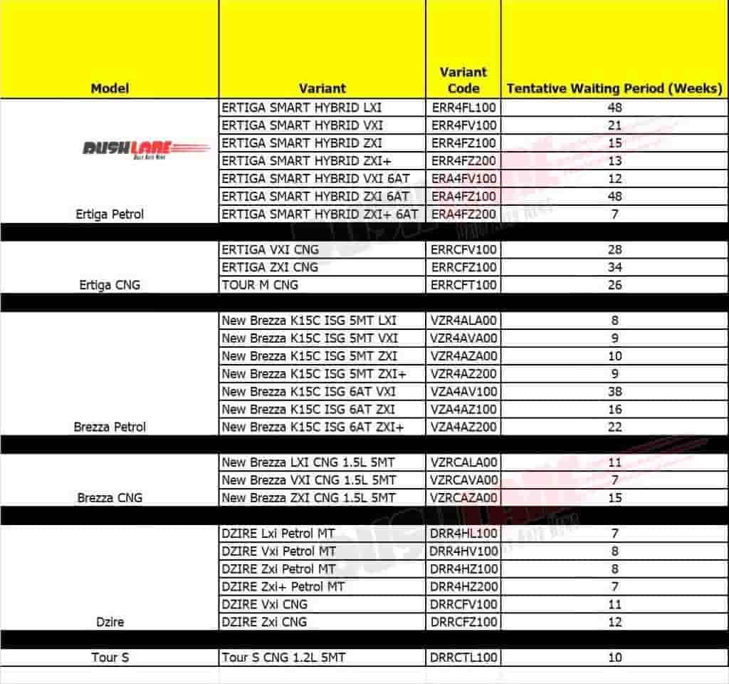 If we talk about the maximum waiting period for Maruti Vehicles is 48 weeks for Maruti Suzuki Ertiga Petrol variant and 34 weeks for Maruti Suzuki Ertiga CNG variant while for the Brezza Petrol variant, it is 38 weeks and Brezza CNG variant it is 15 weeks. For Dzire the maximum waiting period is 12 weeks meanwhile for Tour S the waiting period is 10 weeks.