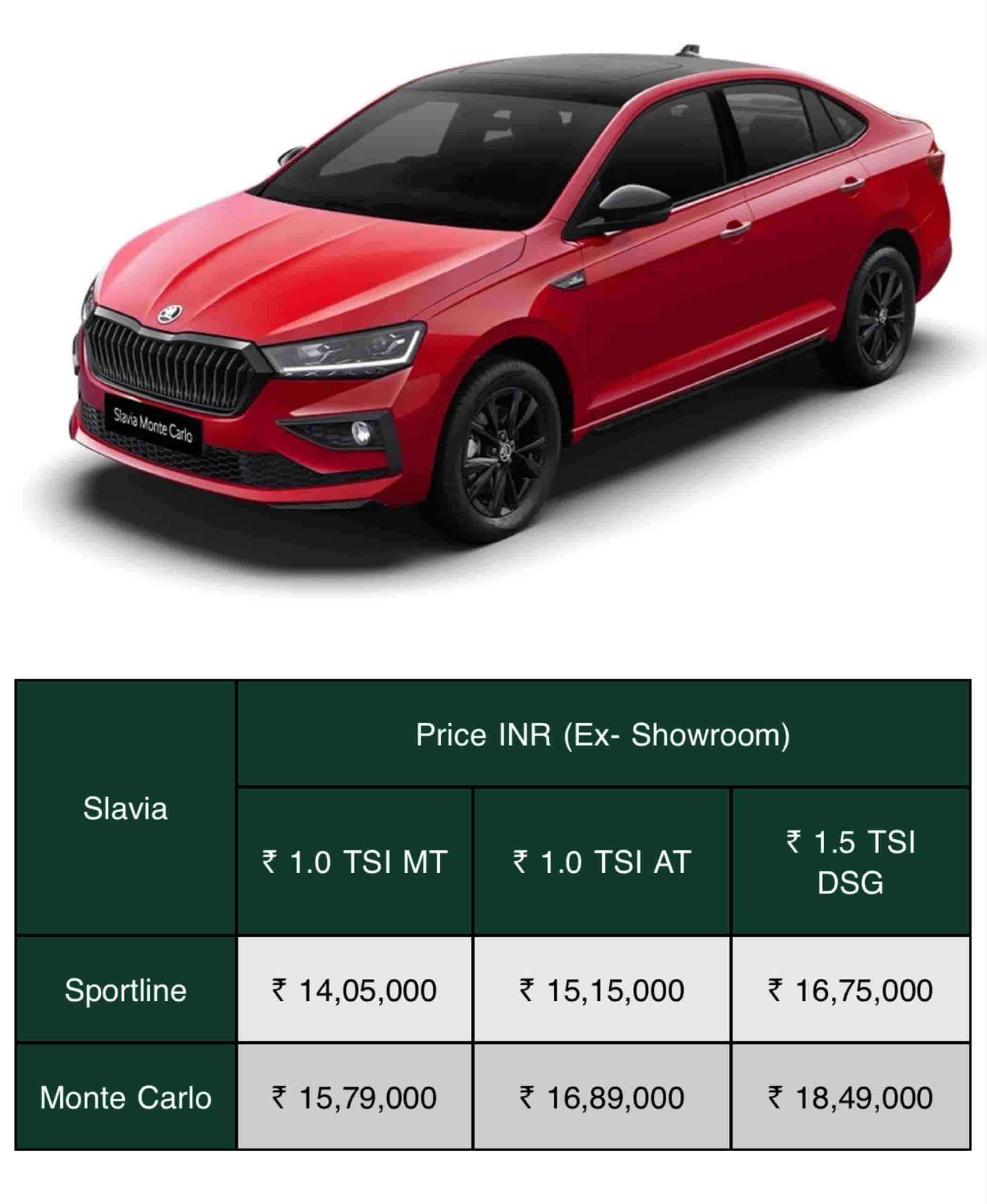 Skoda Kushaq & Slavia ( Monte Carlo & Sportline): Pricing