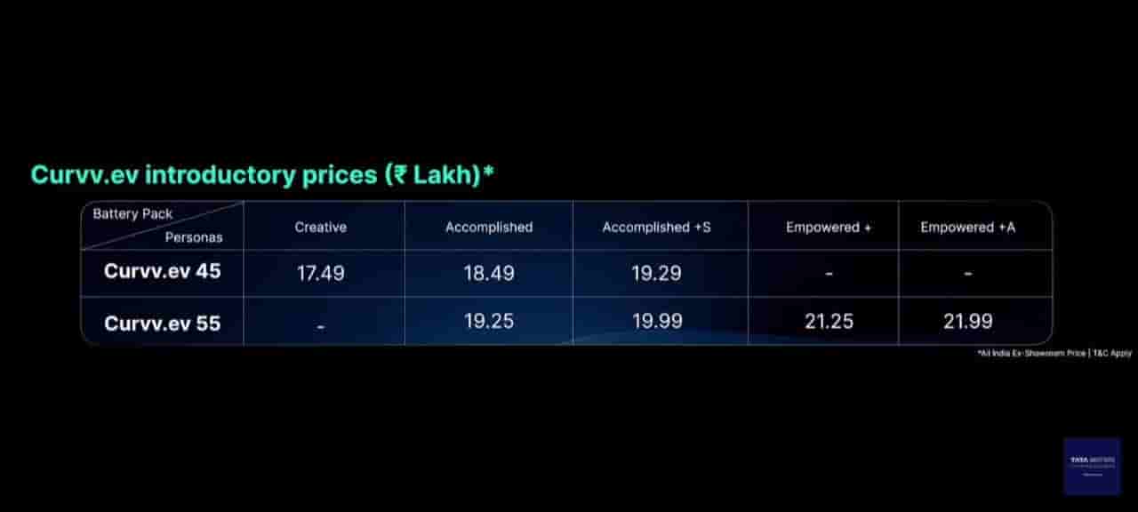 Tata Curvv.ev SUV Coupe Launched Officially In India; Here Are The Features And Pricing