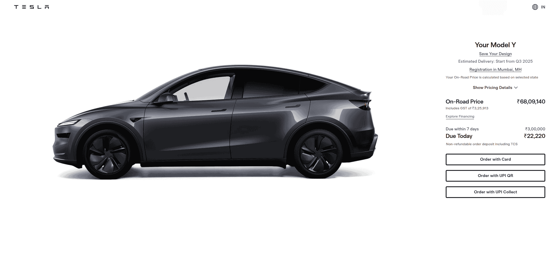 Bookings are already live, and it should be done completely in 7 days by paying an amount of INR 3,00,000. Initially, an amount of INR 22,220 will also have to be paid – today on the 15th of July 2025. This deposit amount is also noted to be non-refundable. Customers can book their orders using card payments, UPI QR code, or by UPI collect. Registrations can be done in Delhi, Gurugram (Haryana), and Mumbai (Maharashtra). The estimated delivery time is mentioned to start in Q3 2025.