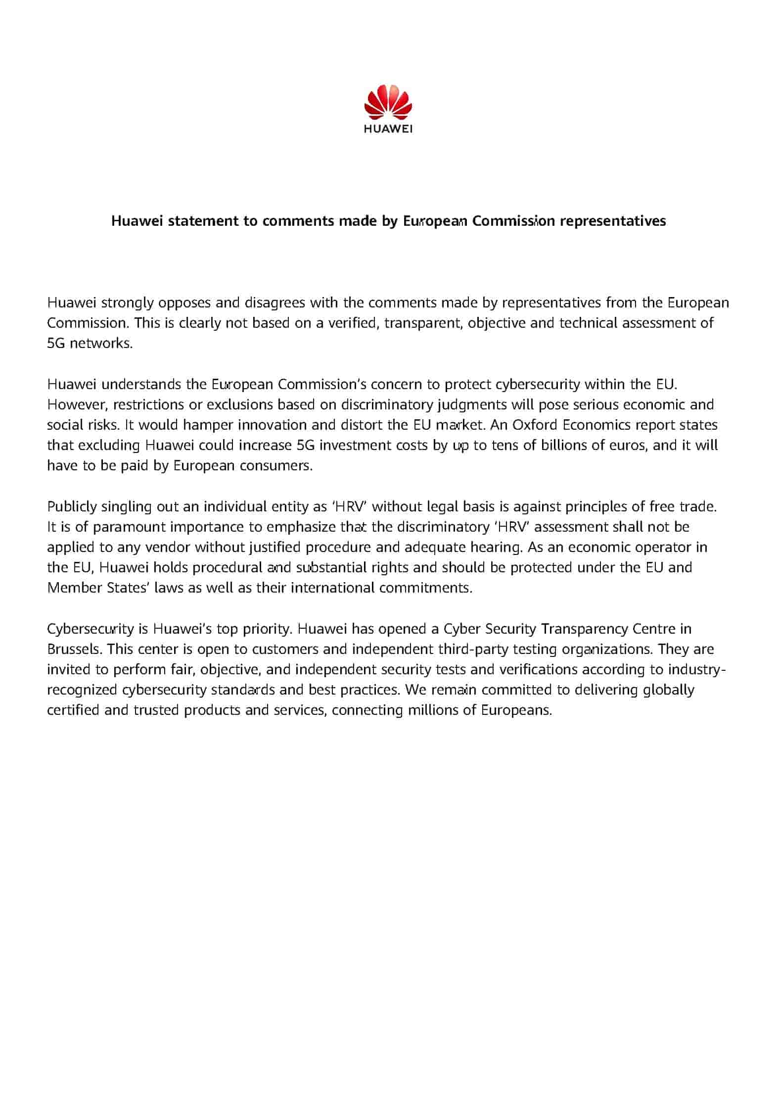 In recent developments, Huawei presented its statements against the comments made by European Commission representatives.