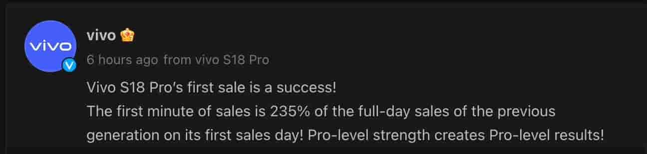 Vivo S18 Pro first sale turns out to be a success; breaks the record of previous generation first sale day
