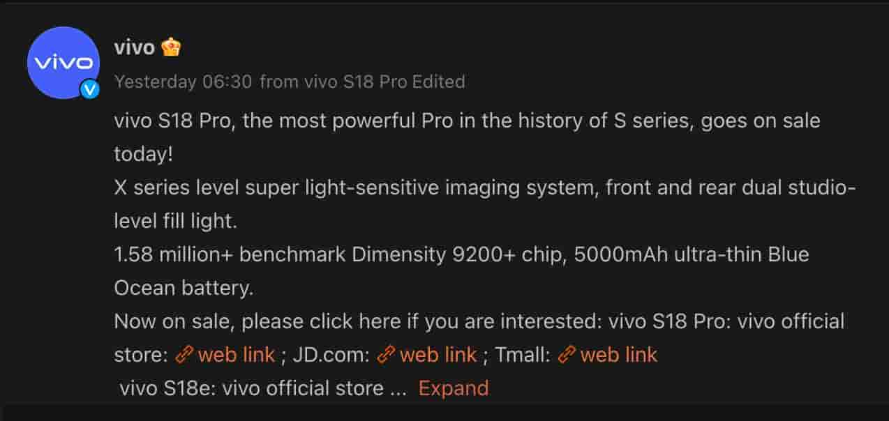 The Chinese consumer electronics maker, Vivo launched its S18 series devices in the brand’s home market last month. The vanilla model was put up for sale last month itself and now, the S18 Pro and S18e devices are also available for purchase (to add, recently the S18 Pro’s first sale was conducted in China as well).