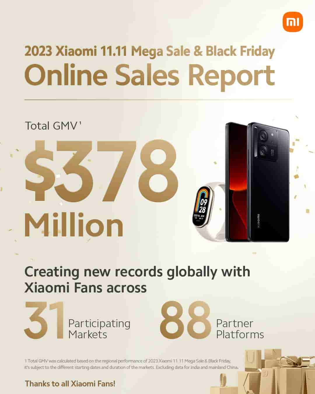 Xiaomi 11.11 Mega Sale and Black Friday 2023 Online Sales Report Revealed: $378 Million Total GMV