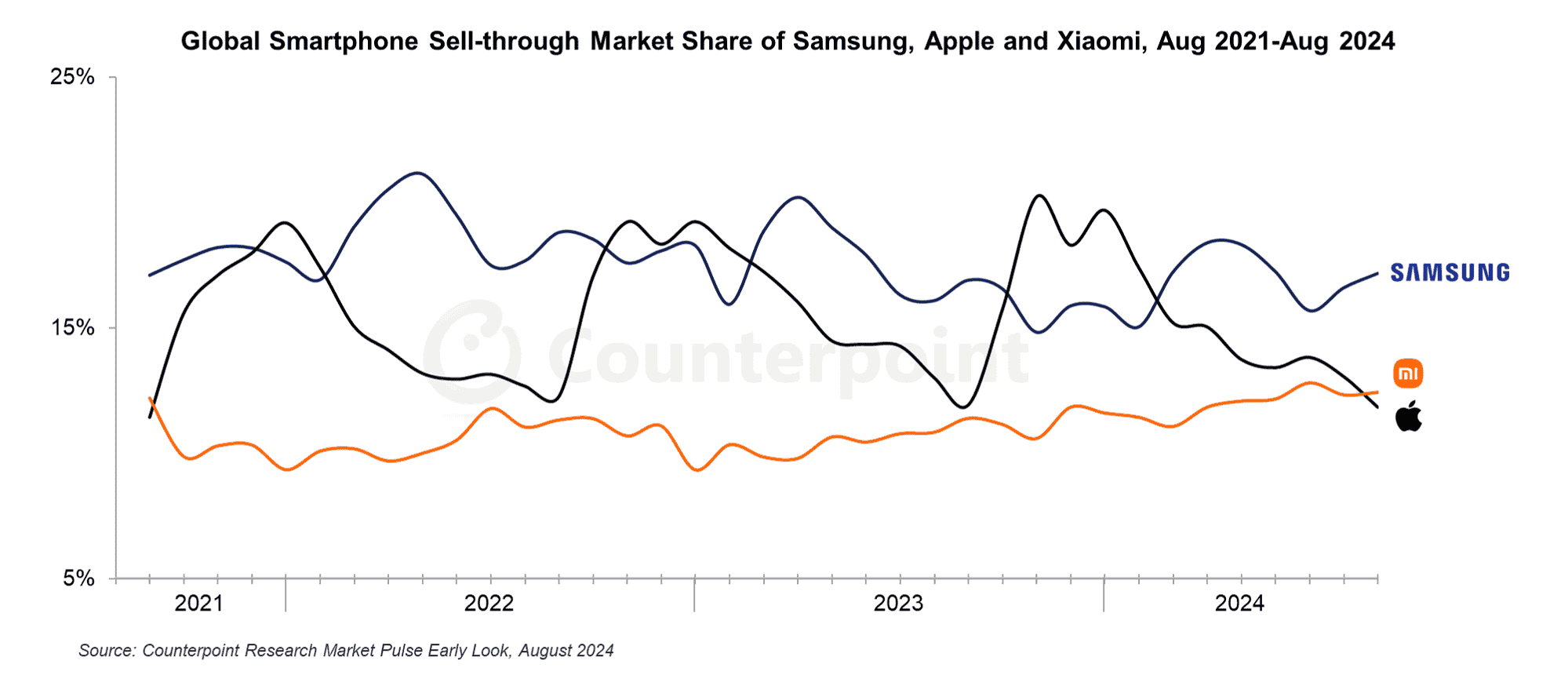 China-based company Xiaomi managed to achieve second spot in terms of global smartphone sell-through volumes in August 2024. This was reported in Counterpoint Research’s Smartphone 360 Monthly Tracker report which also mentions the reason behind the rise of sales of Xiaomi and the decline of sales of Apple iPhones. Several things have contributed to this, let’s get to know about it in detail.