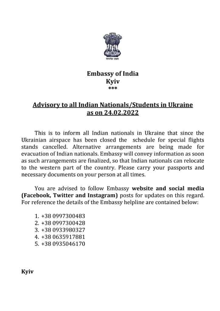 Indian Govt Issues Fresh Advisory to All Indian Nationals Stranded in Ukraine.