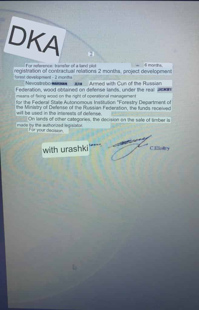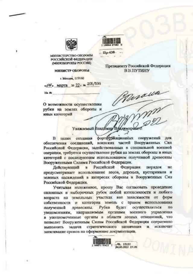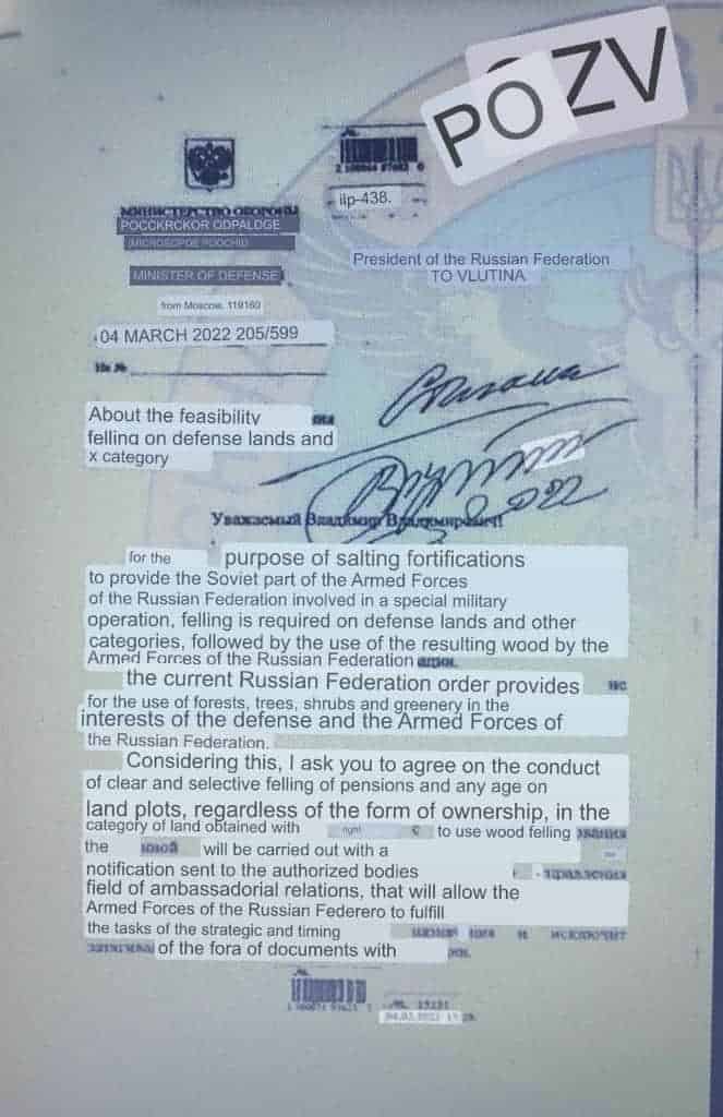 The letter that states Russia plans mass deforestation of Ukrainian forests are published in Russian: