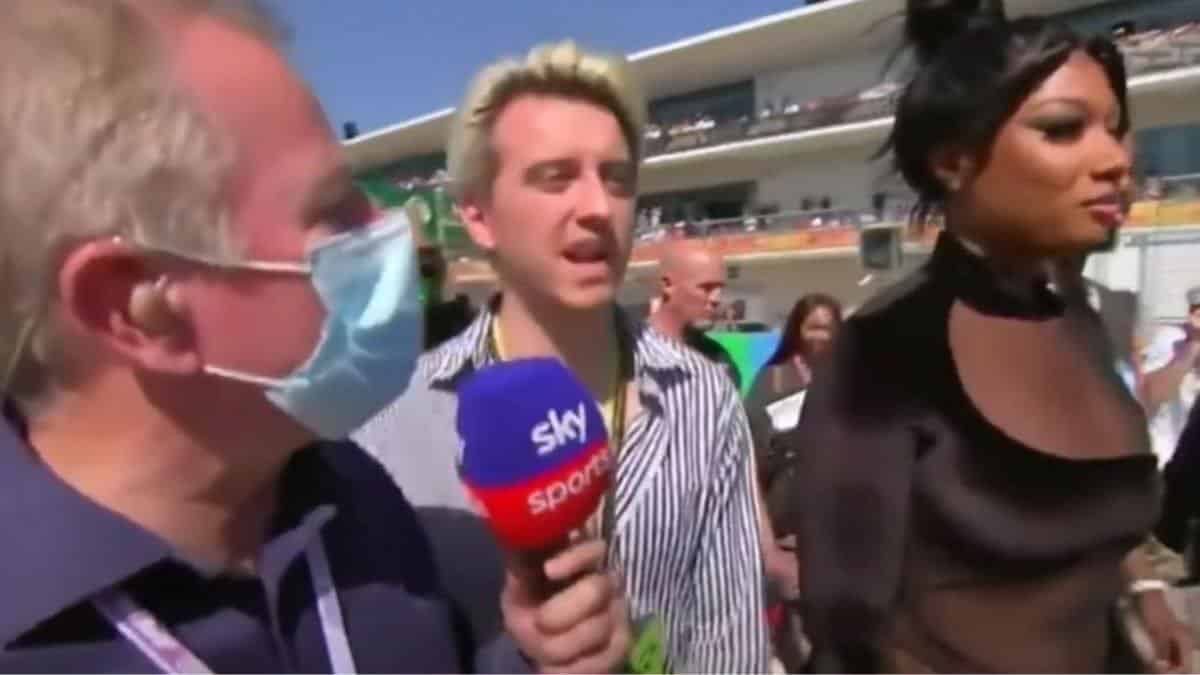 Briton who is a former team mate of Michael Schumacher, Germany’s 7 times World Champion was performing his pre-race ‘Grid Walk’ for Sky Television. Then he tried to start a conversation with Rapper Megan Thee Stallion.