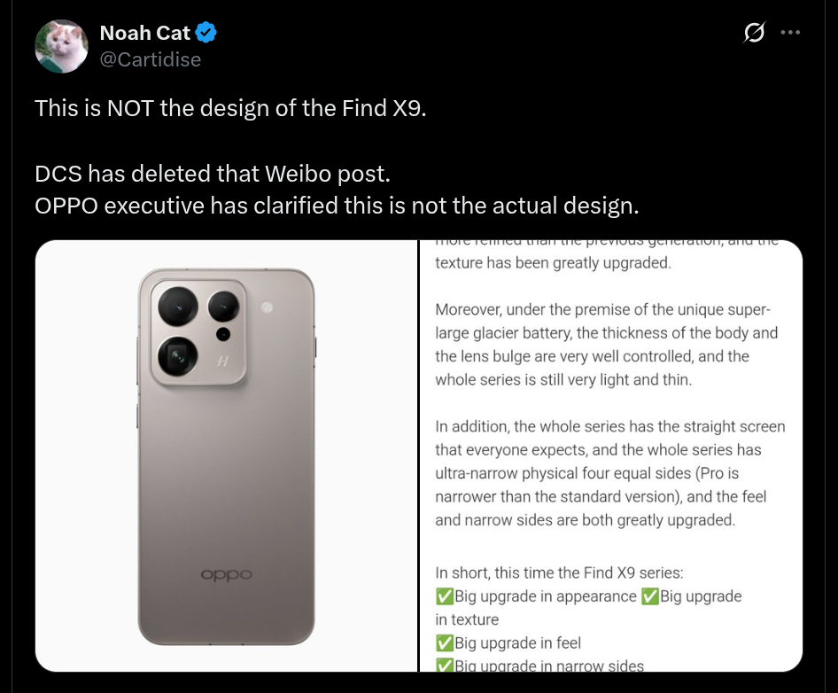 Just recently, social media platforms started to get filled with reports concerning the revealed design of the OPPO Find X9 smartphone and turns out this won’t be the actual design and the real machine is different. OPPO’s Product Manager/Director for the flagship Find series has clarified the matter himself. In addition to this, he has also shared a few more other details concerning the upcoming Find X9 series.