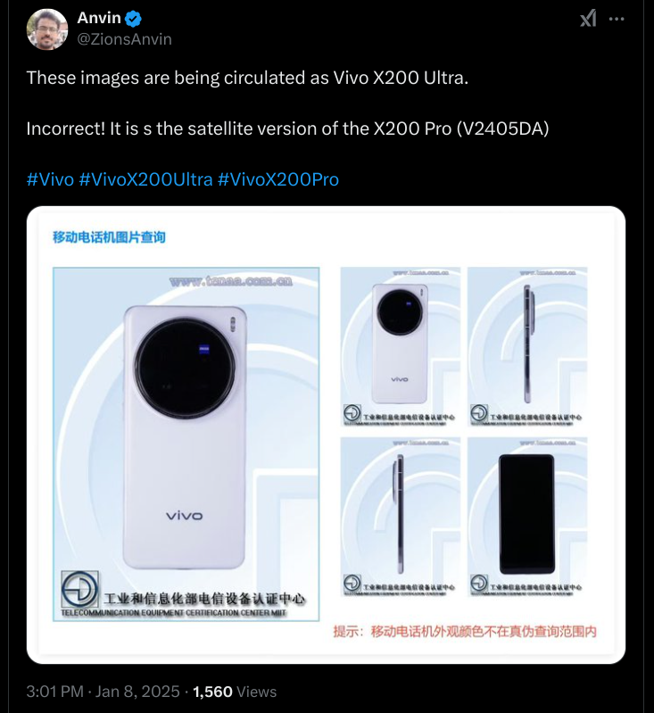 Vivo’s X200 Ultra Images Now Circulating Online is Actually X200 Pro Satellite Version’s and NOT OF THE UPCOMING DEVICE’S