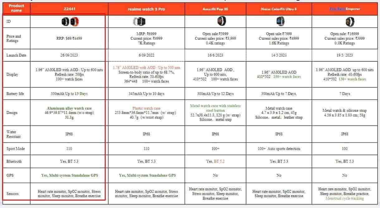 Speaking about its build, the smartwatch features an aluminum alloy watch case and has a dimension of 46.9 x 39.87 x 11.4 mm with a weight of 31.1 grams(without the strap). The device is also IP68 rated.