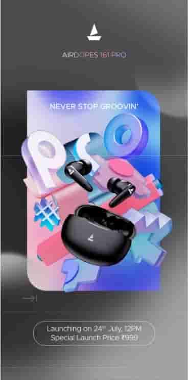 BoAt Airdopes 161 PRO Launching on 24th July at Rs 999