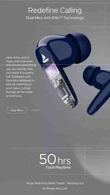 The boAt Airdopes 161 Pro is equipped with 10mm drivers to provide an effortless listening experience. The dual mics with ENx Technology make every sound more vivid and pick up nothing but your voice.