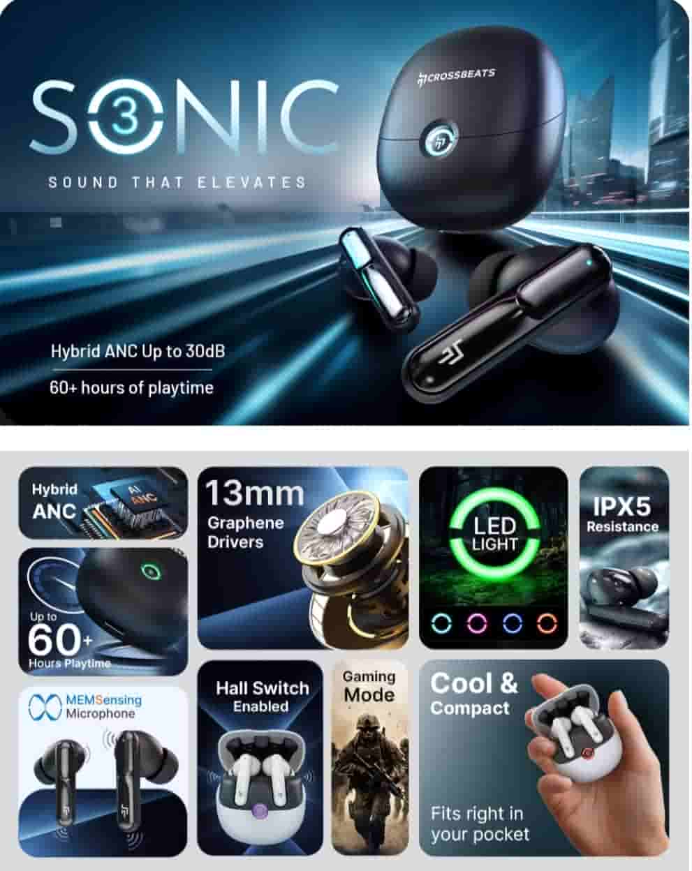 Crossbeats Sonic 3 Hybrid ANC TWS Earbuds: Pricing & Availability