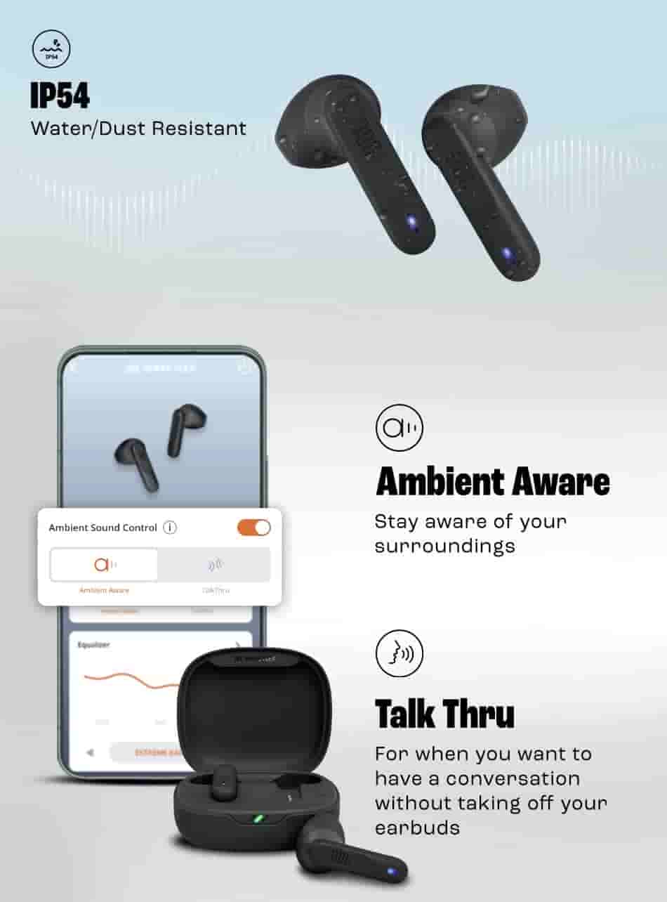 The soon-to-be-launched JBL Wave Flex earbuds, as previously revealed, will feature an IP54-rated dust and water resistant body, and will be offered in a Black color choice. It will also be supporting audio features like Ambient Aware, Talk Thru, Voice Aware, and Smart Audio & Video. These audio features will enable users to stay aware of their surroundings, talk without taking off the earbuds. balance own voice hearing, and easily switch between superior music quality and lag-free audio modes.