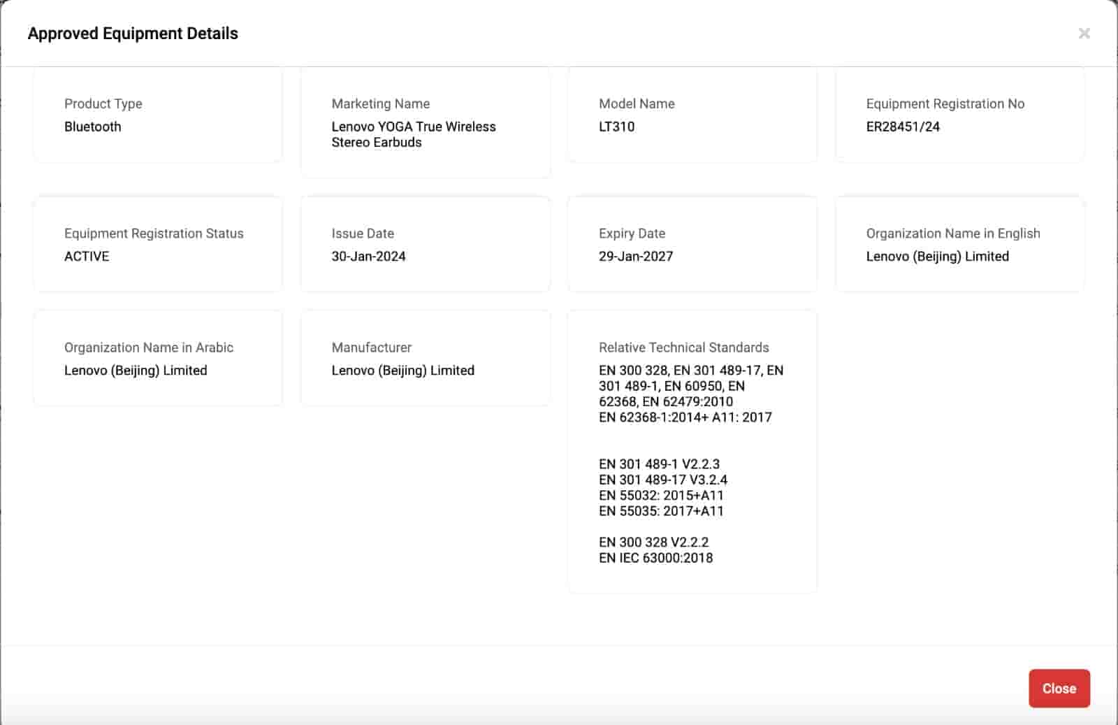 Well seems like the company will soon be unveiling Lenovo Yoga True Wireless Stereo Earbuds as these earbuds have been spotted on the TDRA certification website with model number LT310.