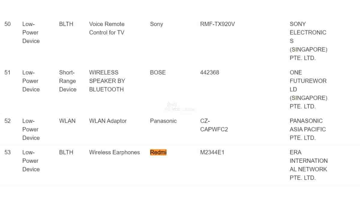 These earbuds under the brand name Redmi have appeared on China’s CMIIT and Singapore’s IMDA certification websites with the model number M2344E1. Starting with the CMIIT certification, these earbuds have been approved with the certificate number “2024-4769” and were issued on the 25th of March 2024. The listing further shows that these earbuds will have a frequency range of 2400-2483.5MHz. We also got to know that it will feature a 20 dBm (100 mW) transmitter from the CMIIT listing. And now in the IMDA, it only shows as a low-power device and nothing more.