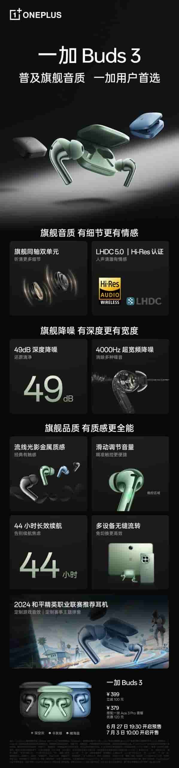 OnePlus launched the OnePlus Buds 3 earlier this year in China alongside the OnePlus Ace 3 smartphone. The earbuds came in two color options Space Gray and Clear Sea Blue color option. Now the company has launched the Khaki Green color variant of the earbuds in China. These earbuds feature a 10.4mm diaphragm woofer and provide 49dB ultra-deep noise reduction and AI call noise reduction. The earbuds pack a 58mAh battery and the case has a 520mAh battery and it can work for up to 44 hours with the charging case and can work for up to 7 long hours in just 10 minutes of charge. For gamers, it supports ultra-low latency up to 99ms and it comes in an IP55 rated body. It comes with three mics on a single earbud for clear calls and touch controls. It supports 3D surround sound effects, Hi-Res Audio wireless, SBC, AAC codec, and LDHC 5.0 technology.