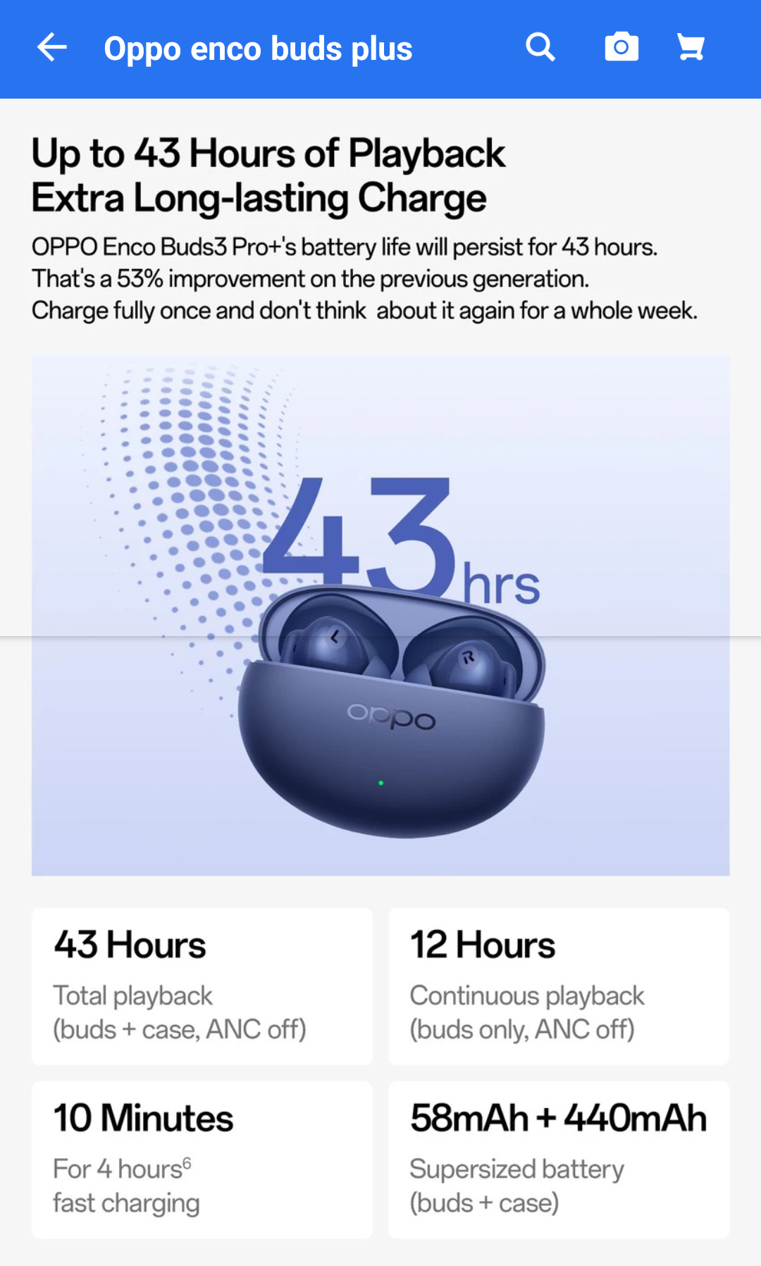 In terms of battery, even after 1,000 battery cycles, ≥80% of the battery health is claimed to be retained. The 58mAh (buds) + 440mAh (charging case) battery combination promises up to 43 hours of playback without ANC, and with ANC it will be offering up to 12 hours of playback. A fast charging feature is also supported with which, 10 minutes of charging is enough to get a playback time of up to 4 hours.