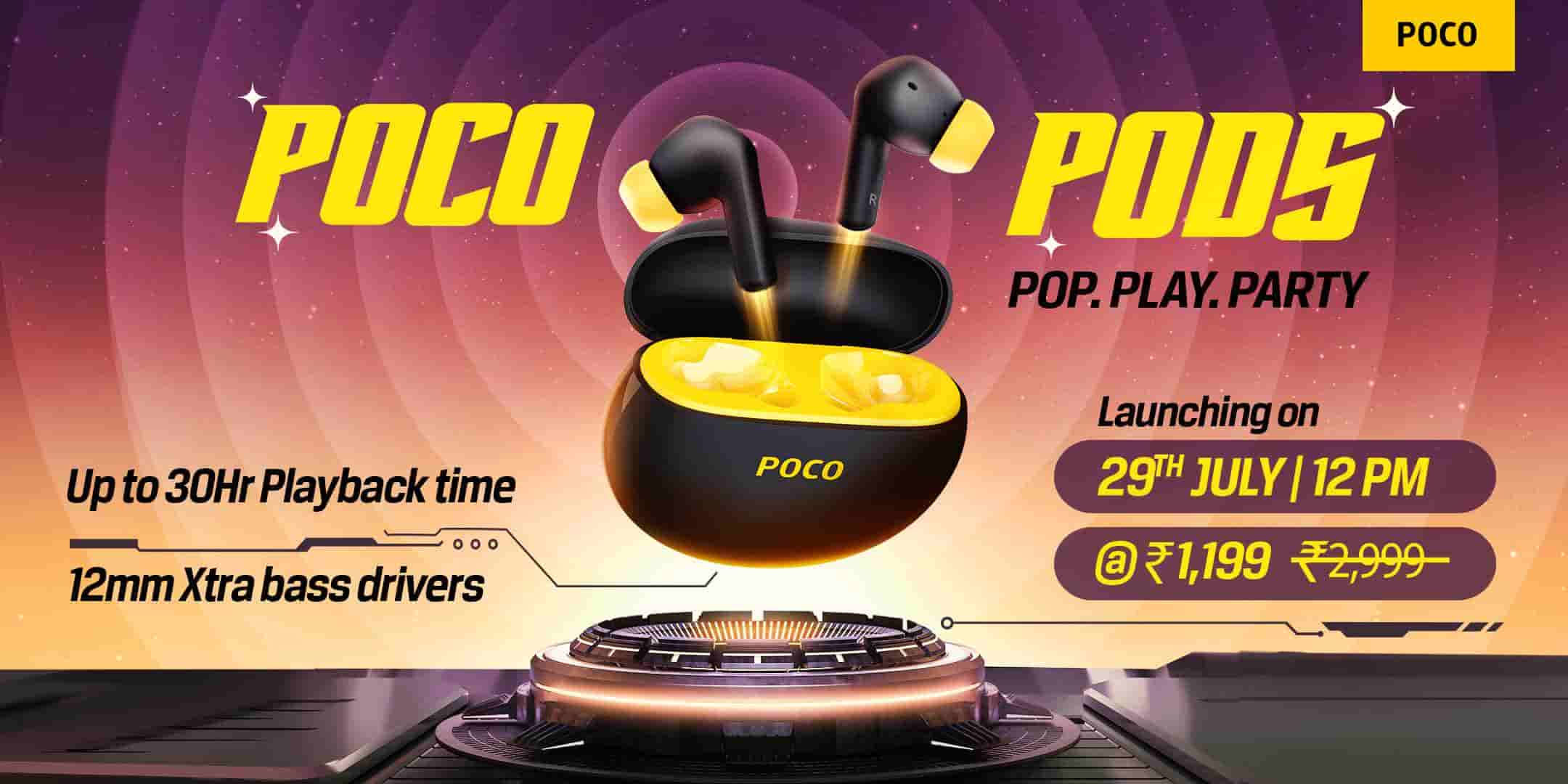 POCO Pods will be launched on 29th July at 12 PM on Flipkart at special launch price of Rs 1,199” announced company