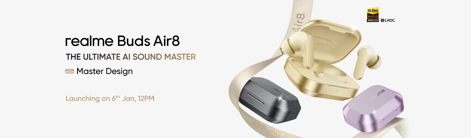 Realme Buds Air 8 launching in India on 6th January alongside Realme 16 Pro 5G series; Microsite live on Flipkart, Amazon and Realme India’s website
