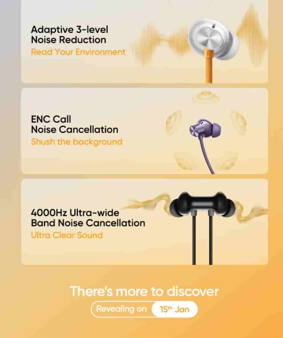 As confirmed earlier, The earphones will offer hybrid Active Noise Cancellation up to 50dB. It is said to provide adaptive 3-level noise reduction so that users can be aware of their environment. You will also be able to enjoy call clarity with the help of ENC Call Noise cancellation technology. It will offer a 4000Hz ultra-wideband noise cancellation feature. As tipped earlier, this wearable will be arriving in three color options- Twilight Purple, Dawn Silver, and Midnight Black. Some more features of this wearable will be revealed on 15th January.
