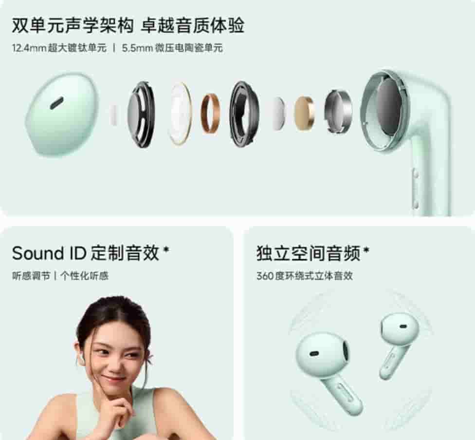 It is equipped with 12.4mm titanium and 5.5mm piezoelectric ceramic dual drivers. The earbuds offer 360-degree surround sound via Xiaomi’s HRTF algorithm. With the help of Xiaomi’s Earbuds app, users can personalize the sound with 5 EQ presets and custom controls. There is also a SoundID–based audio personalization feature.