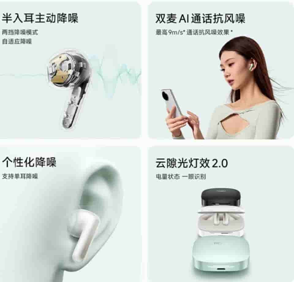 It comes with dual microphones that support an active noise cancellation feature so that users can enjoy call clarity. Wind noise resistance is rated for up to 9m/s. The earbuds offer 6.5 hours of playback time and up to 32 hours total playback time with the case. A 10-minute charge offers 2 hours of playback time. Other features include dual device connectivity, fast MIUI popup pairing, and the latest Cloud Light Effect 2.0 with upgraded battery level indicators.