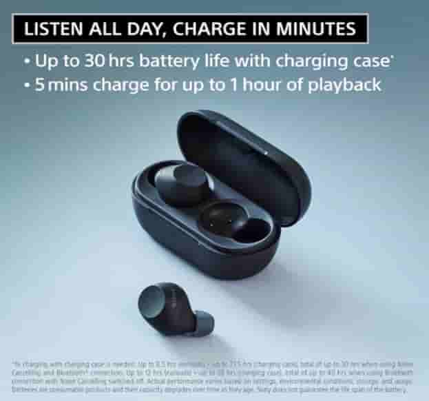 Dual microphones improve the noise-canceling function of the WF-C710N. To enjoy a natural listening experience, you can switch to Ambient Sound mode. The earbud offers 8.5 hours of battery life, and the case offers 21.5 hours of battery life, which makes the total battery life 30 hours with ANC on, while with ANC off, it offers up to 40 hours of battery life. 5 minutes of quick charging offers up to 1 hour of playback. It is equipped with a 5mm driver and comes with Digital Sound Enhancement Engine processing. With Precise Voice Pickup technology, conversations are ultra clear even in noisy environments.