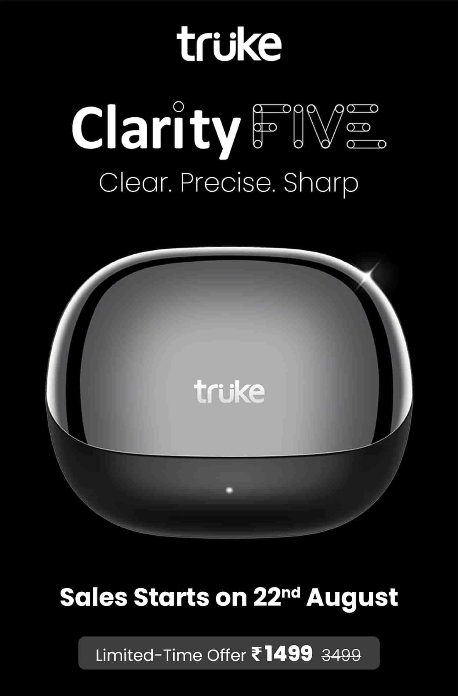 Truke’s ‘Clarity Five’ earbuds will go live for sale on Amazon India on 22nd August. The product will be offered for a limited period offer price of Rs 1499. Meanwhile, you can turn on the ‘Notify Me’ button in Amazon India to be notified when the sales go live.