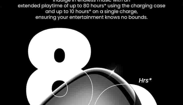 In terms of battery power, the buds offer a playtime of about 80 hours with the charging case. Without the charging case, the buds can last up to 10 hours with a single charge.