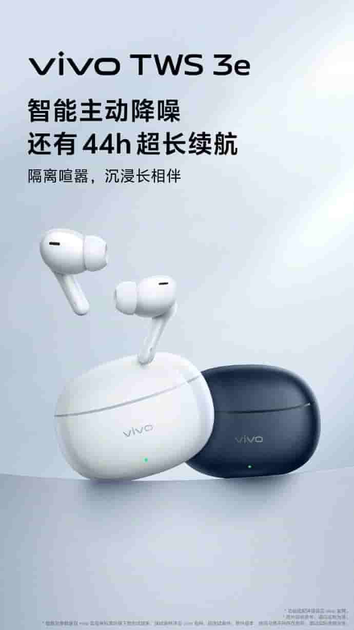 Vivo TWS 3e earbuds will be arriving in two color variants- Blue and White. The earbuds will support intelligent active noise reduction and will offer immersive surround sound quality. The earbuds will arrive with 44-hour-long battery life and support fast charging.