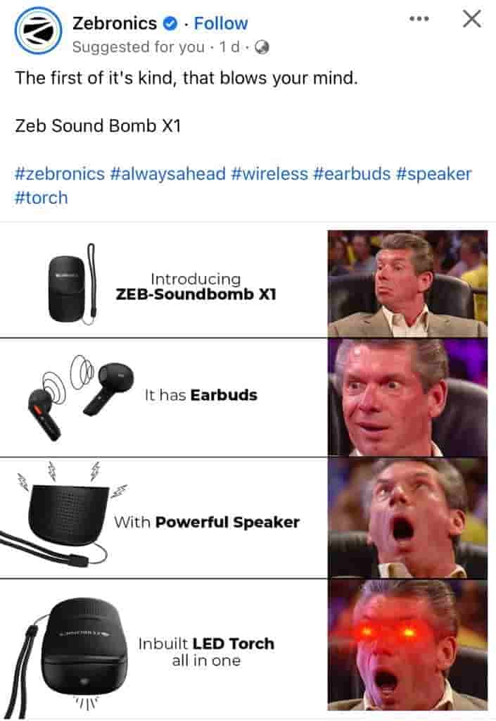 Zebronics is best known for its sound box and earbuds with multiple unique features that make it incomparable. A meme showed that first, it came up with ZEB Soundbomb 1 in the market and attracted the attention of the market towards it.