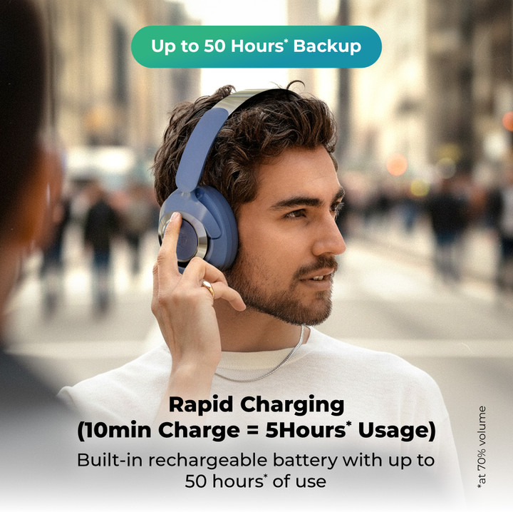 The headset is equipped with 40mm Titanium Drivers for delivering strong bass and clear sound. It comes with a built-in rechargeable battery and offers up to 50 hours of playback time. With rapid charging, users can enjoy 5 hours of usage time with 10 minutes of charge. The gaming mode offers low latency.