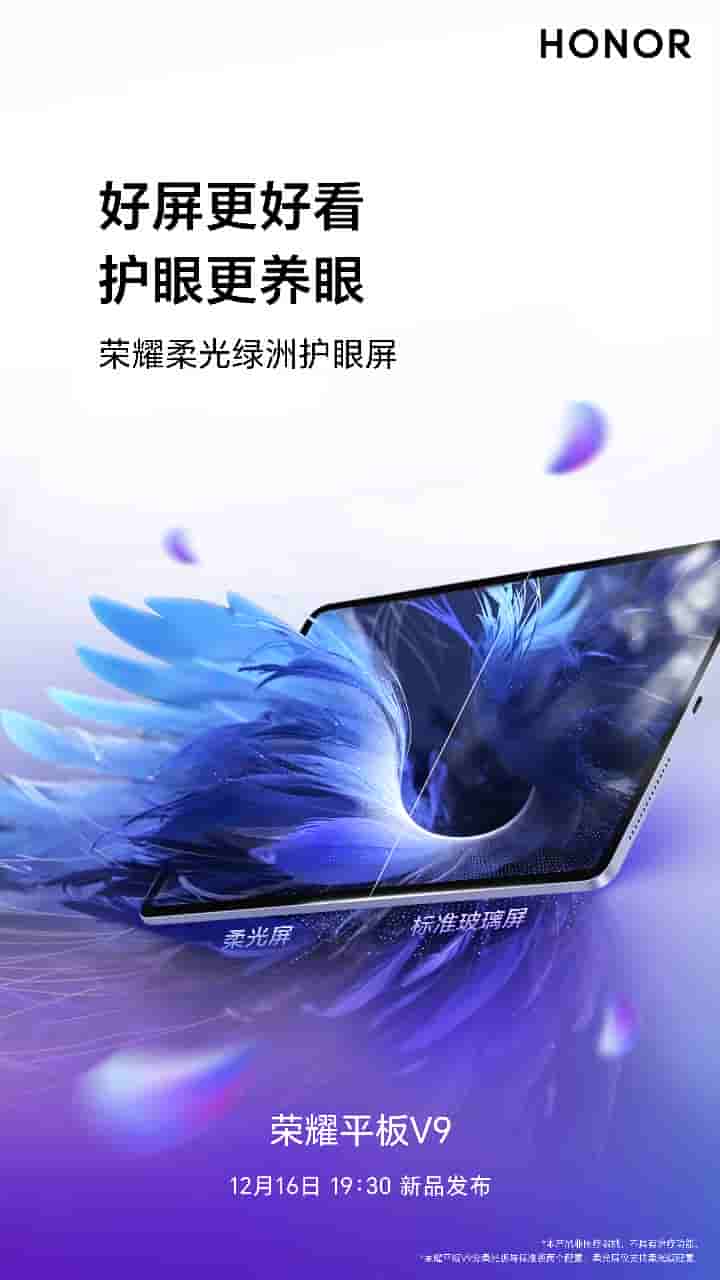The Honor Pad V9 tablet was already pointed out to be a light-weight device with many AI-capabilities, and now it has been teased to feature Honor’s Soft Light Oasis Eye Protection screen with better display quality and eye protection. To note, the Honor Pad V9 will be a Wi-Fi-only model with 8GB/128GB, 8GB/256GB, 12GB/256GB, and 12GB/512GB storage options and Jade Dragon Snow(White), Mountain Ash(Grey), and Lu Yan Zi(Purple) colors choices. Its render images have also been revealed with notable key features like the quad speaker system and IMAX Enhanced experience.