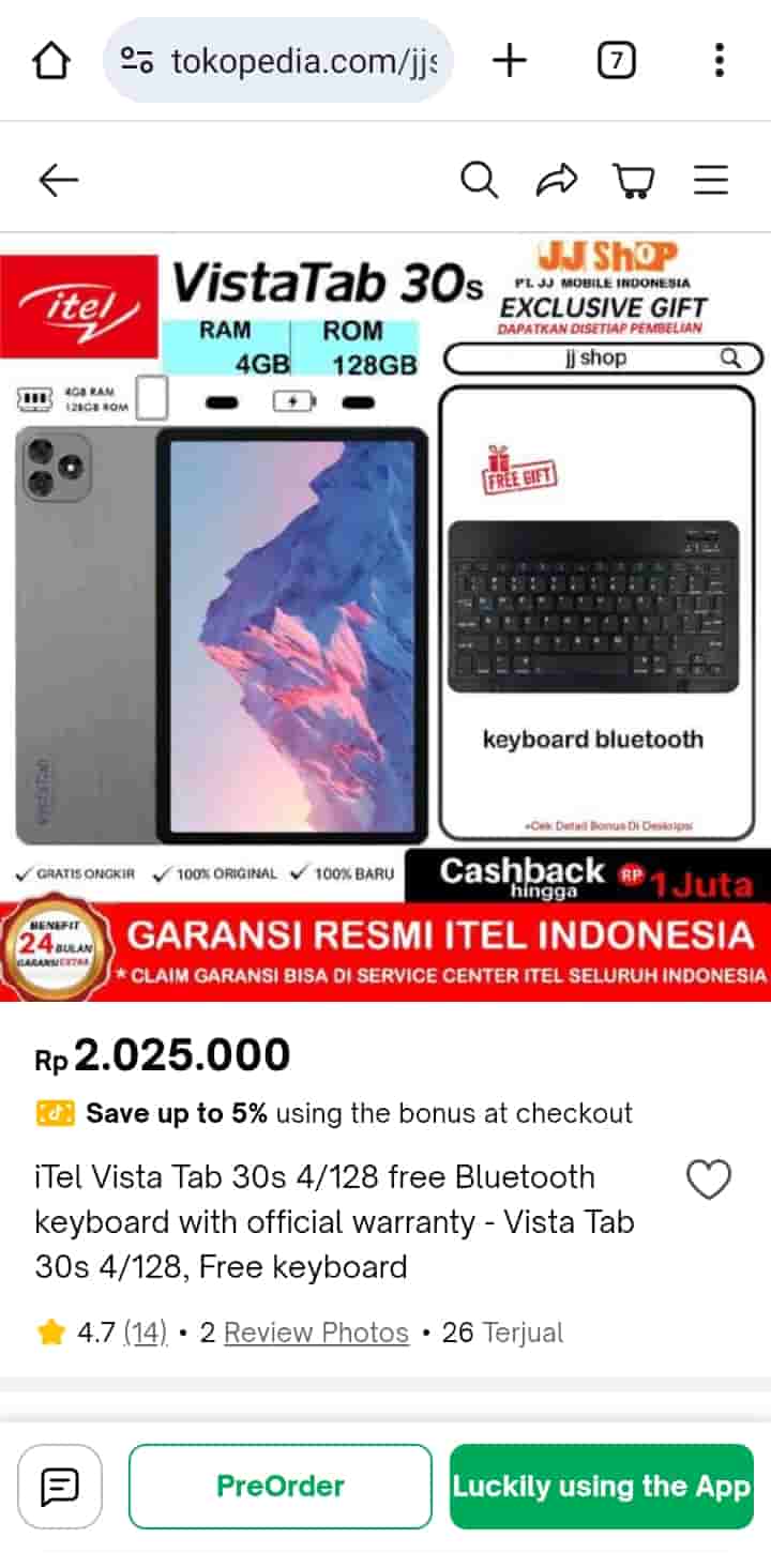 About its launch, as per the teaser poster shared on Instagram via itel’s official handle for Indonesia, the VistaTab 30S tablet will be launched today midnight – on the 25th of July 2025 at 12:00 AM WIB. On Shopee, the product listing reveals that it will be made available for purchase (as part of the flash sale) on the 24th of July 2025 at 10:29 PM WIB – with IDR 500 discount. The Tokopedia product page on the other has the tablet listed at a price of IDR 2.025.000, and its pre-order is currently live. During checkout, customers will also be able to save up to 5% too on Tokopedia.
