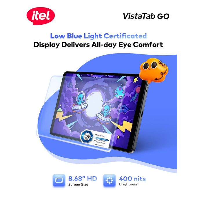 itel’s VistaTab Go has been introduced with an 8.68″ HD Bright Display, and it is Low Blue Light-certified (TUV SUD) – ensuring all-day eye protection and 20% reduced eye fatigue. A brightness rate of 400nits is also supported on the device, and it additionally brings a free vision protector too for its customers. On the battery side, it equips a 7000mAh battery backup, which is claimed to offer longer usage time for more hours of study. The device also comes with various learning resources (free international materials for multiple subjects*). Parental Lock Control and a kid-friendly stand case are its other features. It weighs 1.5kg, and comes in a Grey color choice.