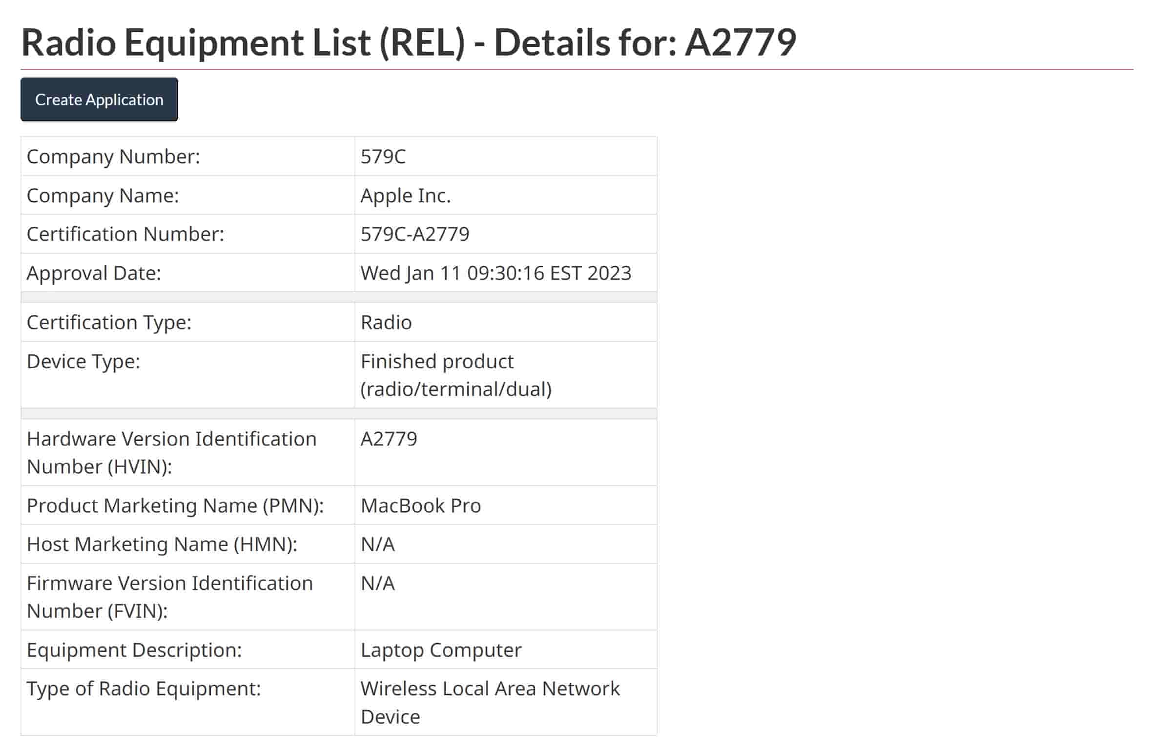 Well according to a user on twitter who posted the information that New Apple MacBook Pro model A2779 seen in Industry Canada Radio Equipment List database. Approved on January 11, 2023. Likely the new M2 Max or M2 Pro. The device will support WiFi 6E / 6GHz band.