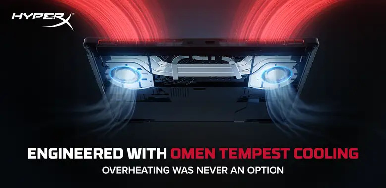 The listing also confirms the presence of OMEN Tempest Cooling, which is described as being designed to manage heat and reduce the chances of overheating during usage. No further technical details about the cooling system are provided.