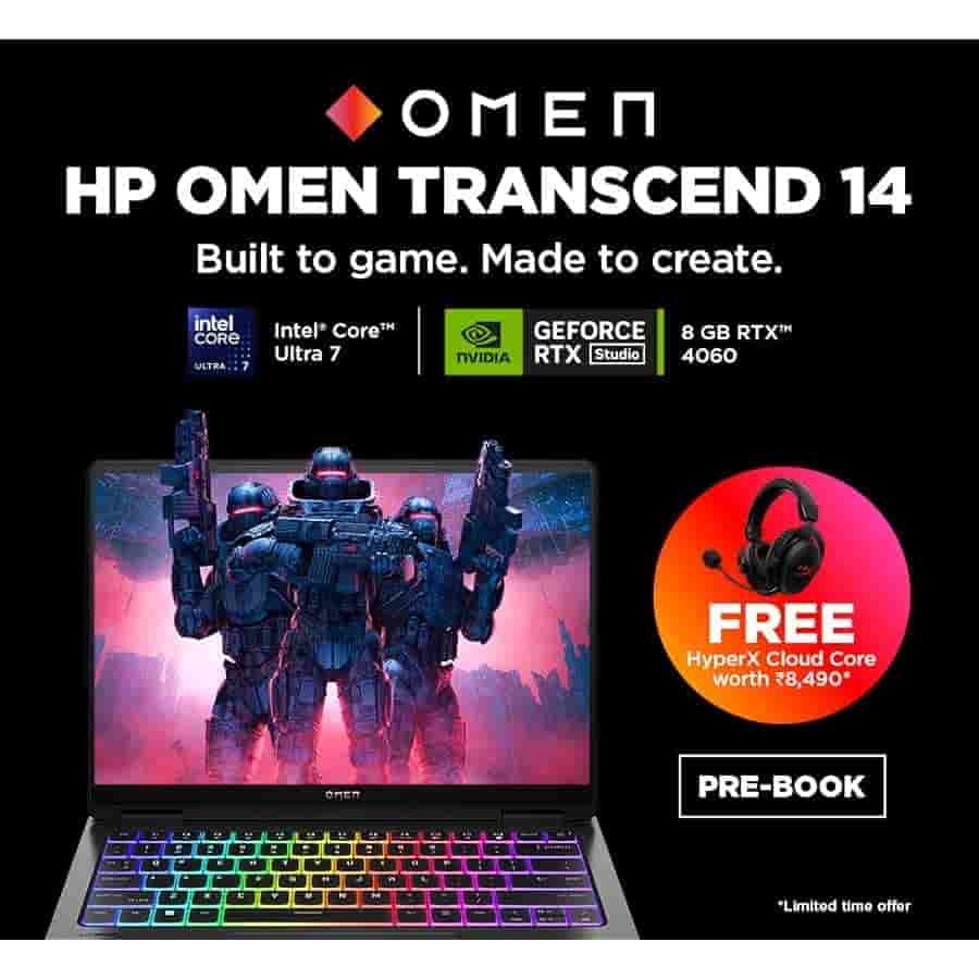HP OMEN Transcend 14 Laptop Is Up For Pre Order In India On Amazon with Free Hyperx Cloudcore Headset