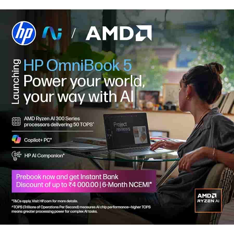 HP OmniBook 5 with AMD Ryzen AI 5 340 / AI 7 350, 16GB RAM, 16-inch 2K display launches in India at ₹75,990; pre-booking now open on Amazon, available from April 17