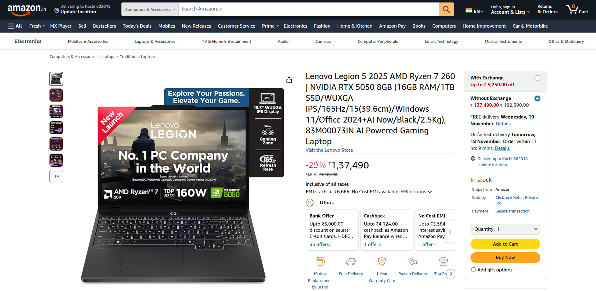 Lenovo Legion 5 2025 – Now Available in India Via Amazon