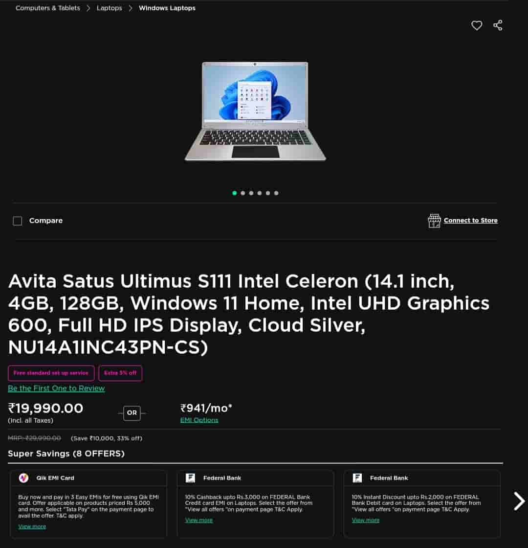 Looking for compact and lightweight easy to carry laptop, With Savings upto Rs 10,000 on Avita Satus Ultimus S111